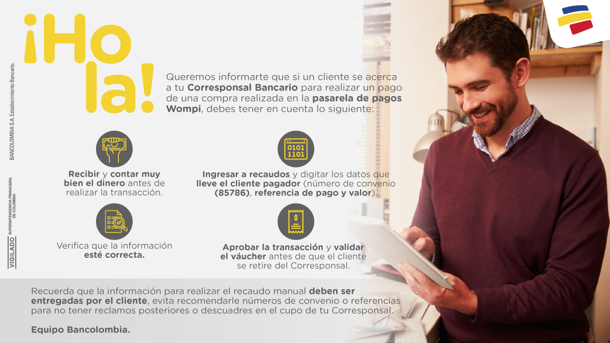 - ¿Qué pasa si un cliente va a realizar un pago en efectivo de Wompi y le indican que no reciben pagos a convenios manuales?
